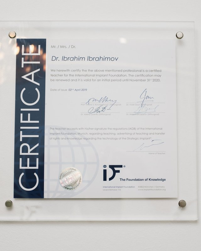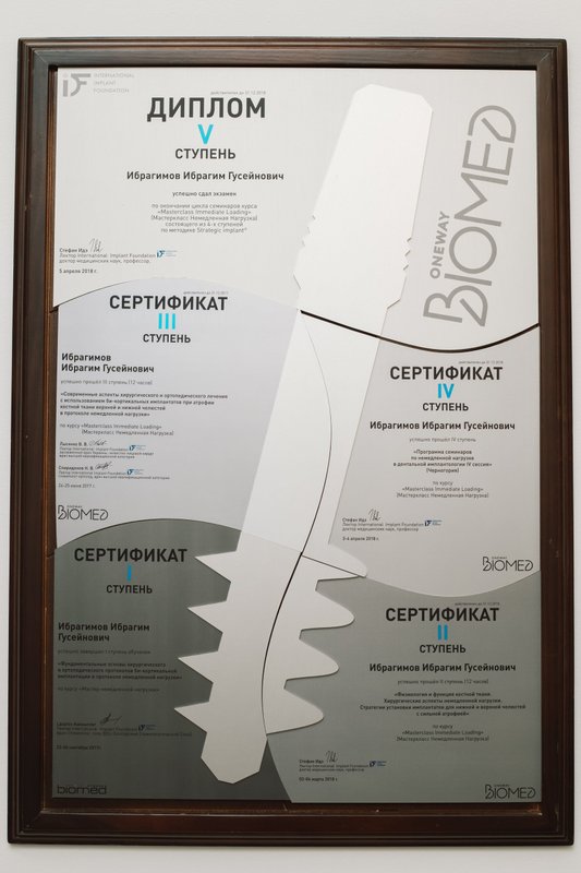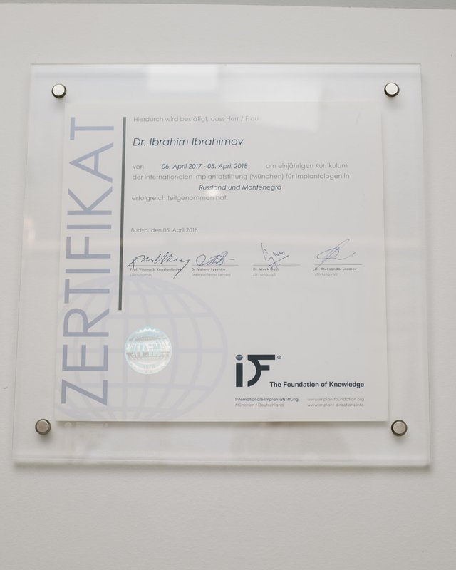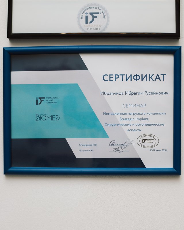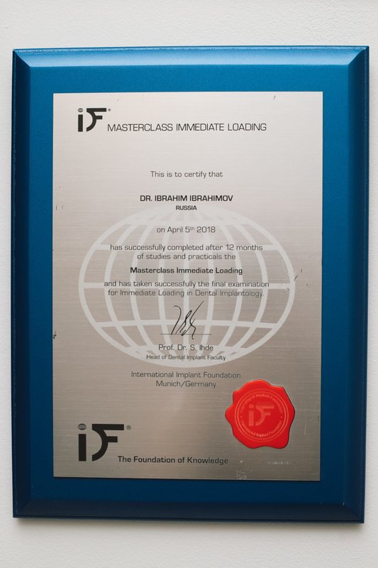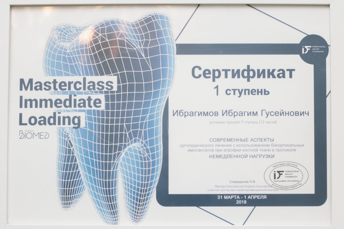Ибрагимов Ибрагим Гусейнович является стоматологом-ортопедом, а также работает в сфере стоматологической хирургии и имплантологии. Ибрагим Ибрагимов в том числе обладает знаниями и навыками в области эстетической реставрации зубов. Вы можете записаться к Ибрагиму Ибрагимову, если вам нужно восстановить утраченный зуб или если какой-либо из зубов разрушен до такой степени, что обычная пломба ему не поможет. Зубы перед протезированием обязательно должны быть санированы, поэтому перед визитом к ортопеду лучше посетить стоматолога-терапевта.